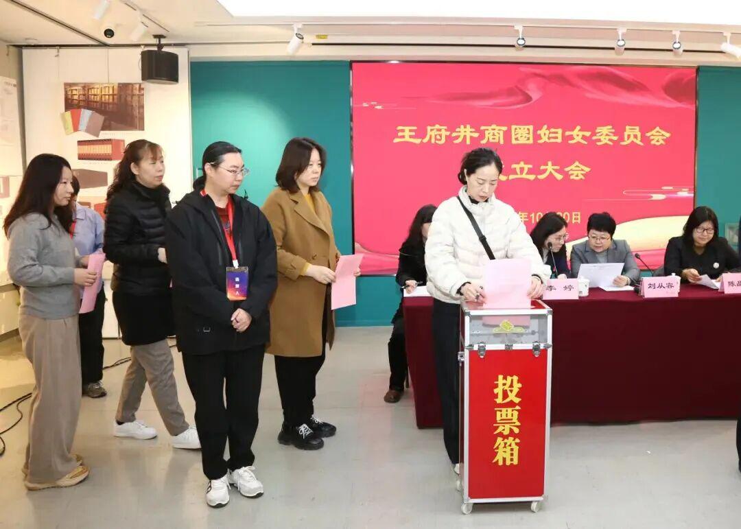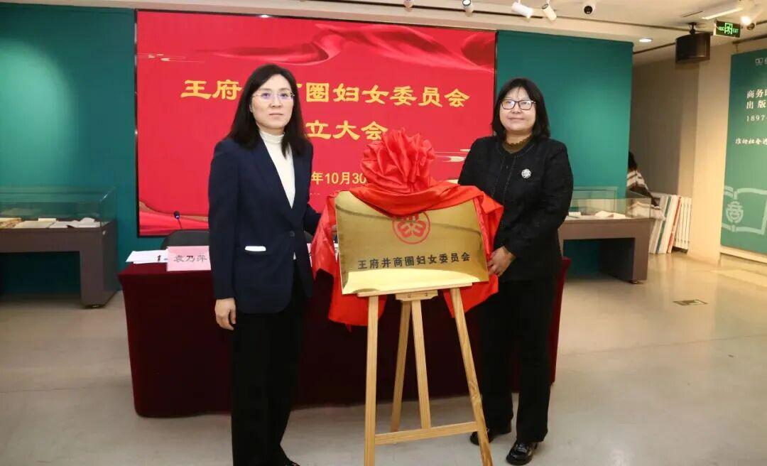 东城区妇联党组成员、副主席陈晶晶和东华门街道工委副书记、妇联主席李婷为王府井商圈委员会揭牌。